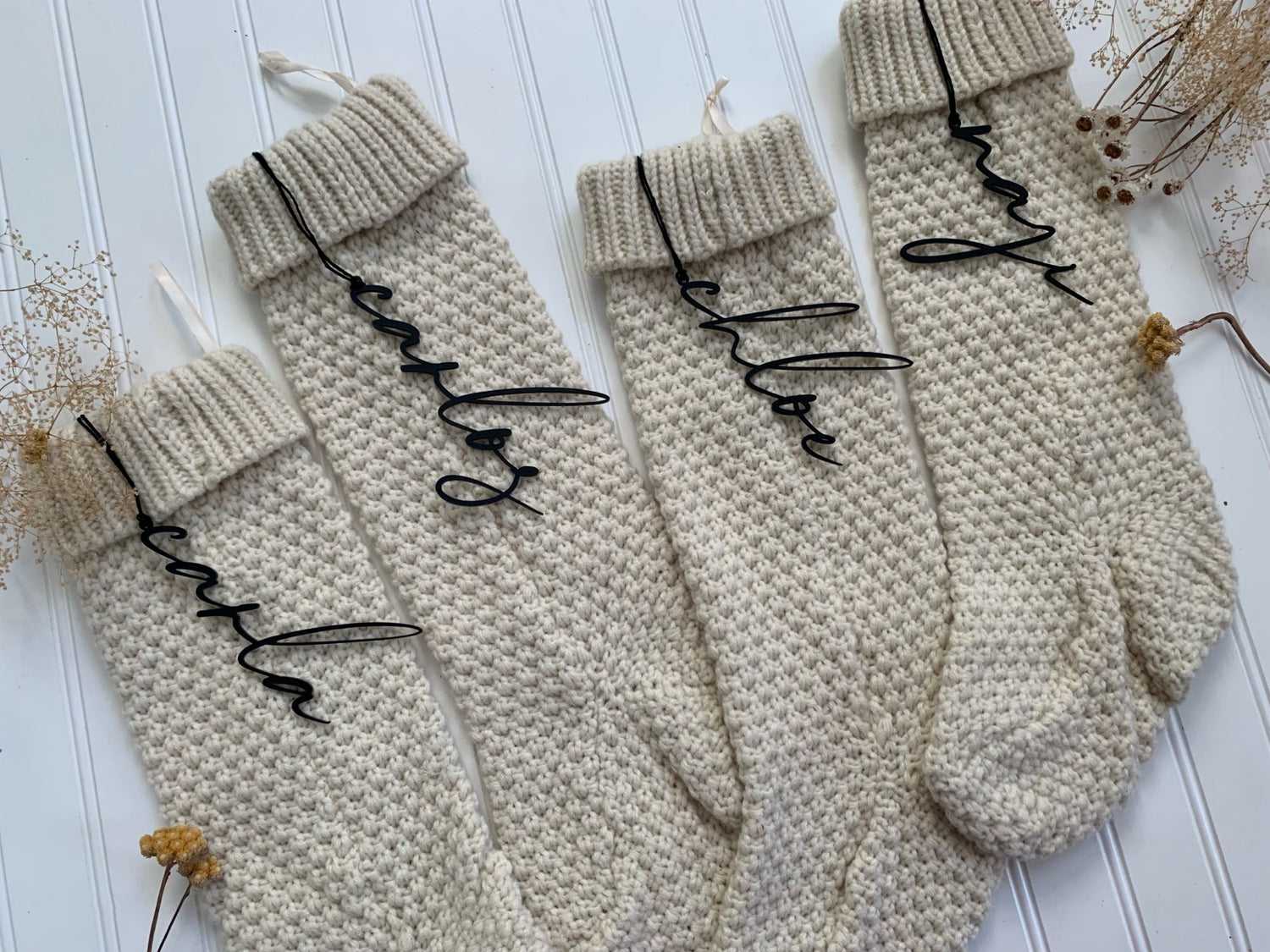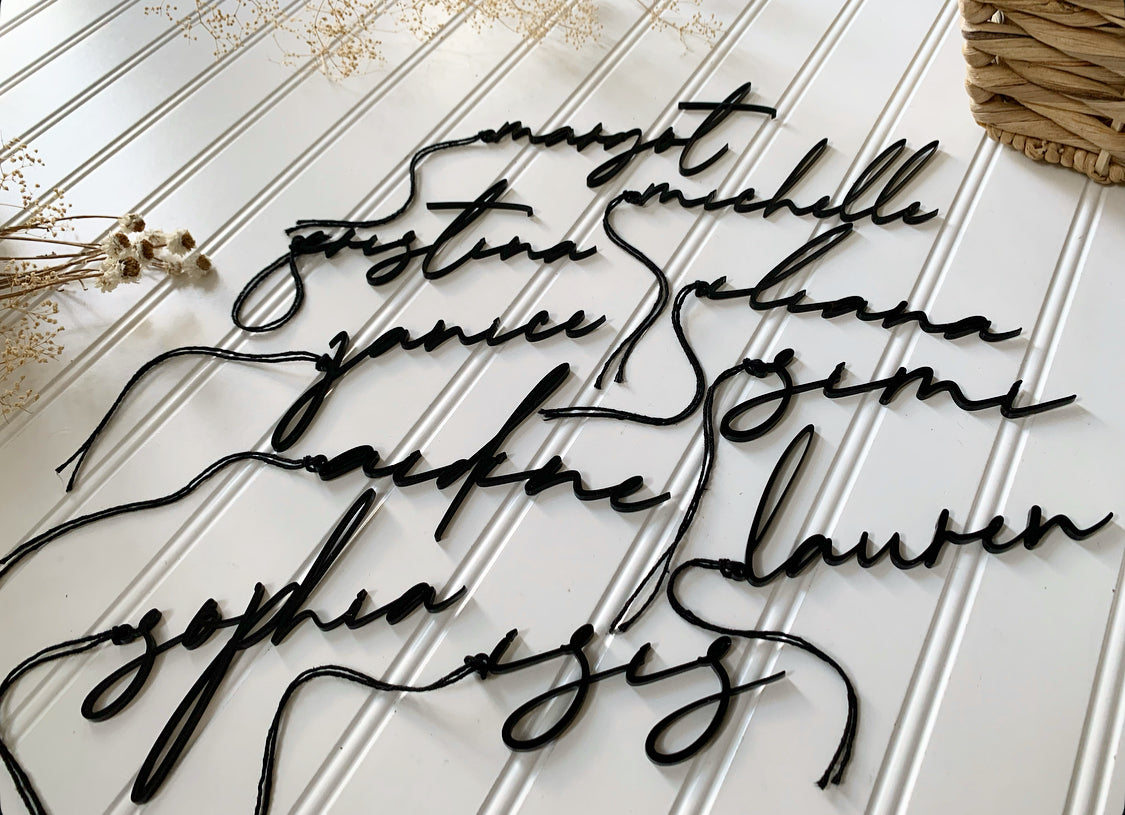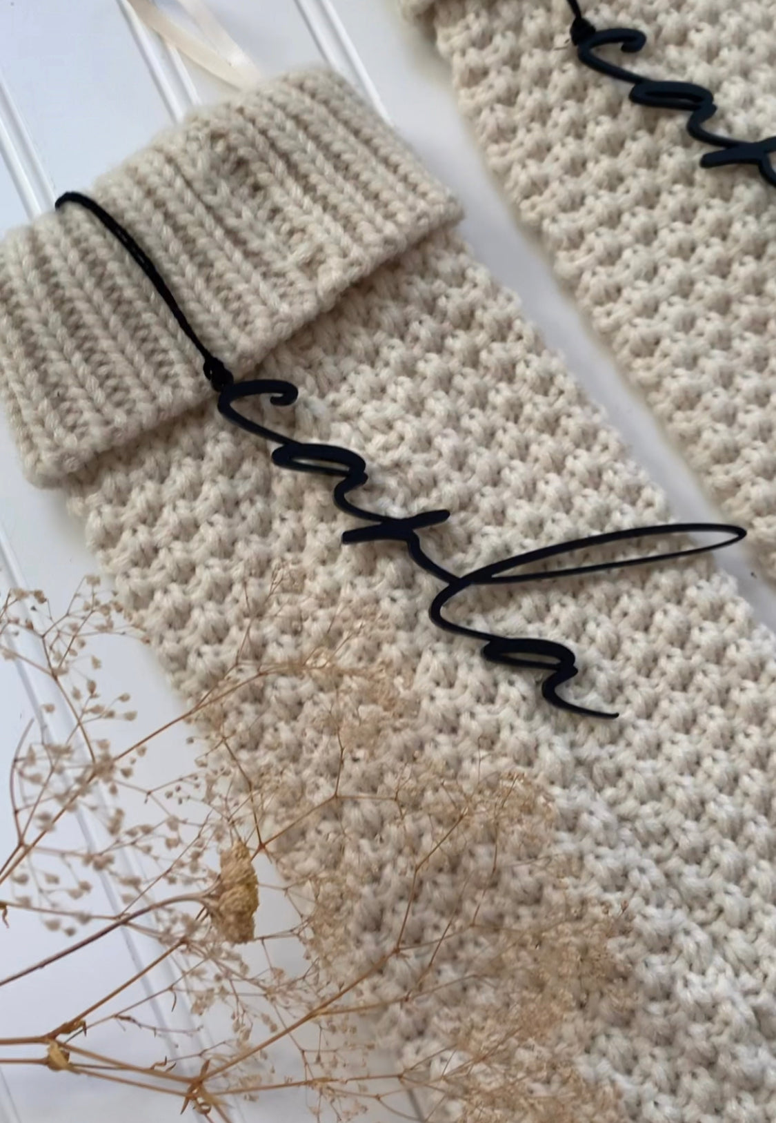 What a beautiful way to decorate each family members Christmas stockings with these gorgeous acrylic name tags. Each tag comes with a black string and measures up to 6-7 inches depending on length of name.