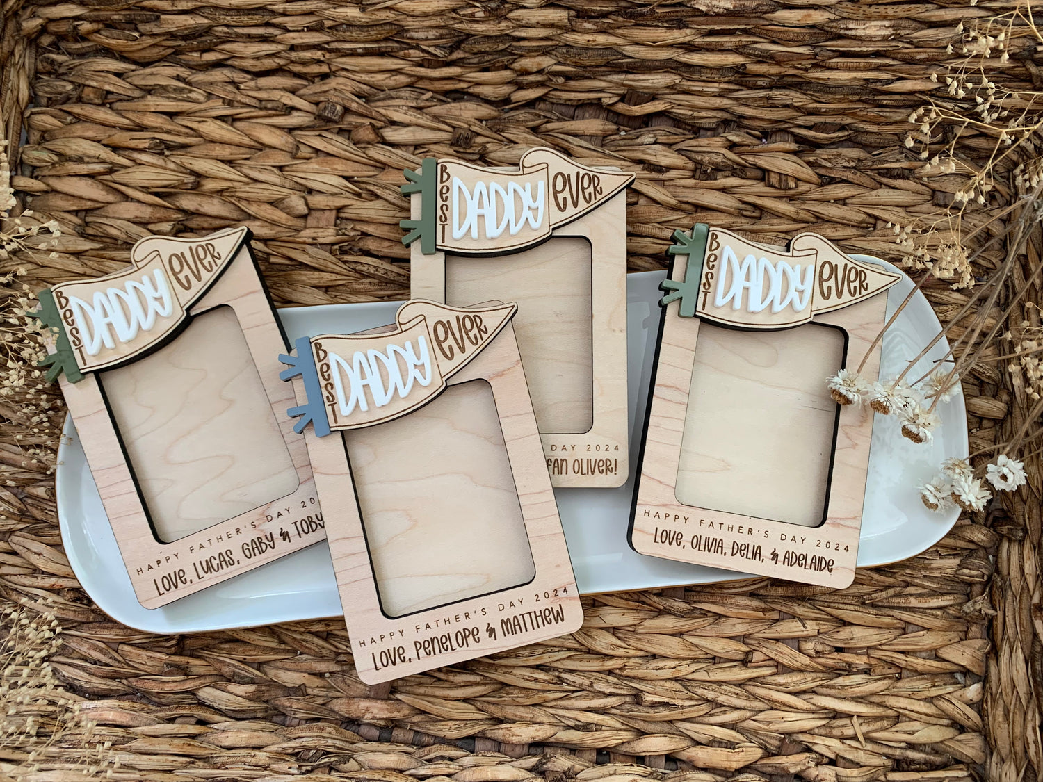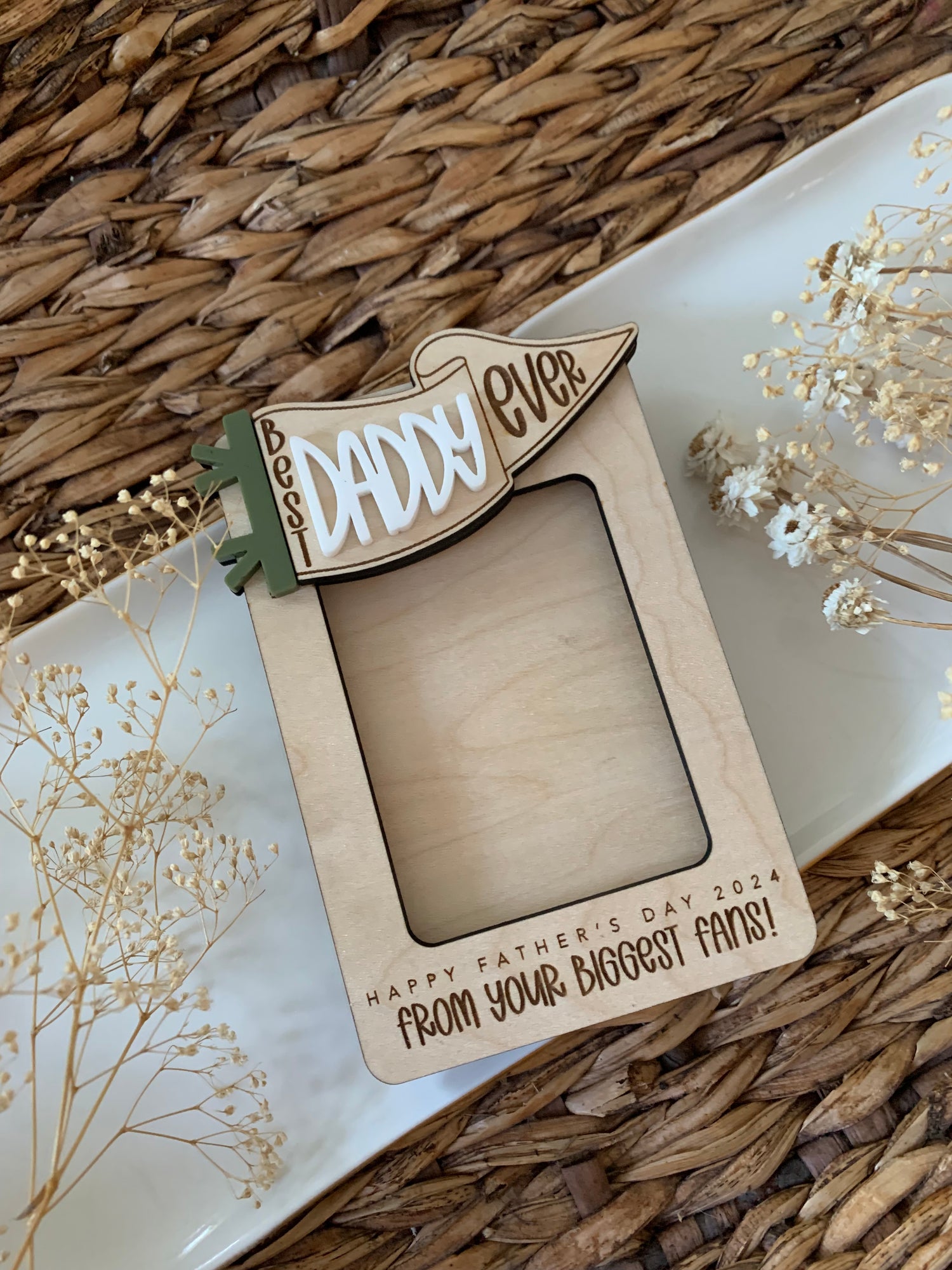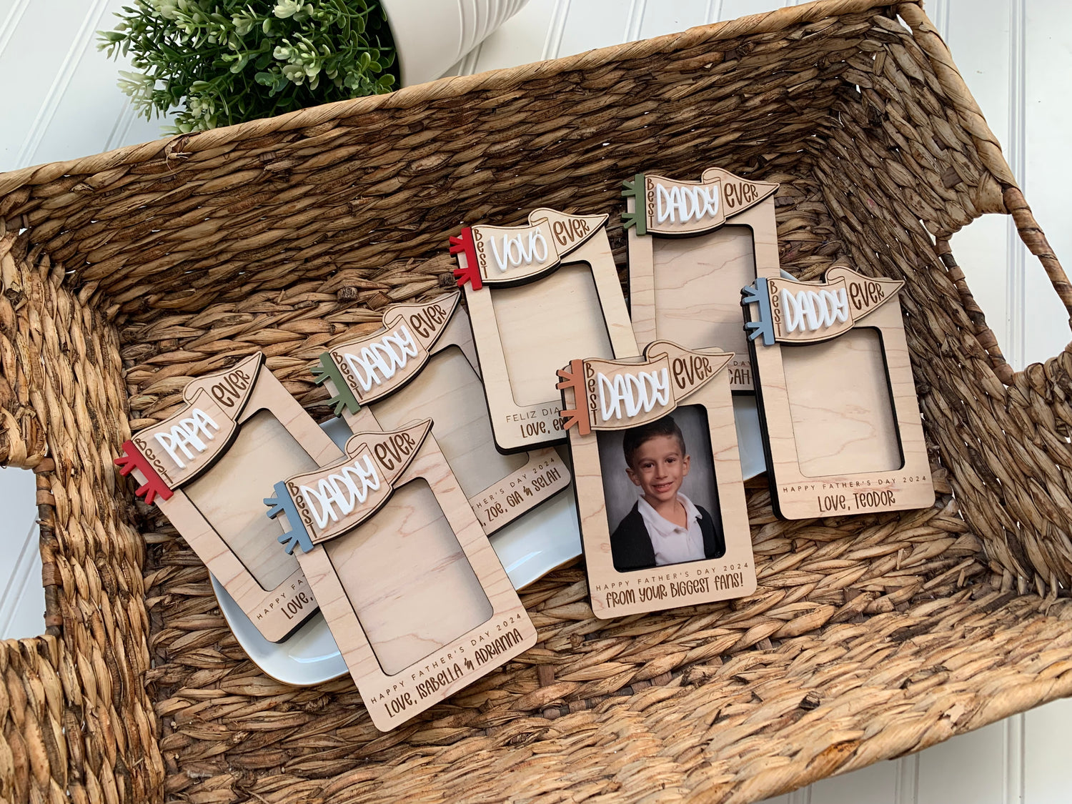 Looking for a cute gift for Father’s Day? How about this adorable photo magnet? Add your little ones picture and it’s ready to be hung on the fridge! Each frame fits a wallet size picture 3.5 x 2.5 and comes with magnets.