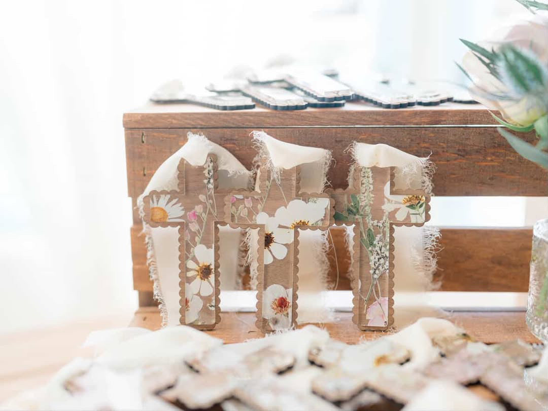Floral acrylic, wood baptism communion favors, personalized gift favors