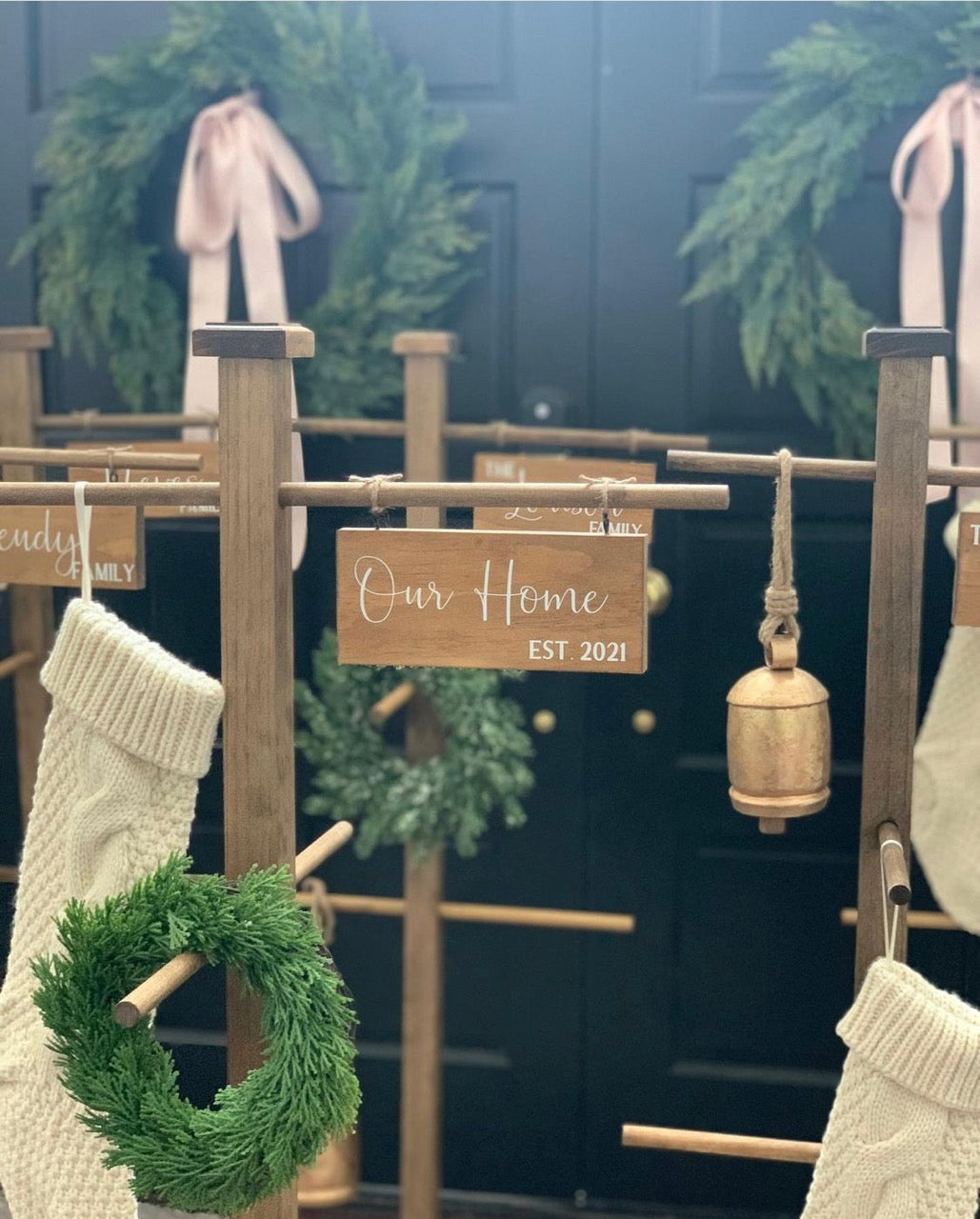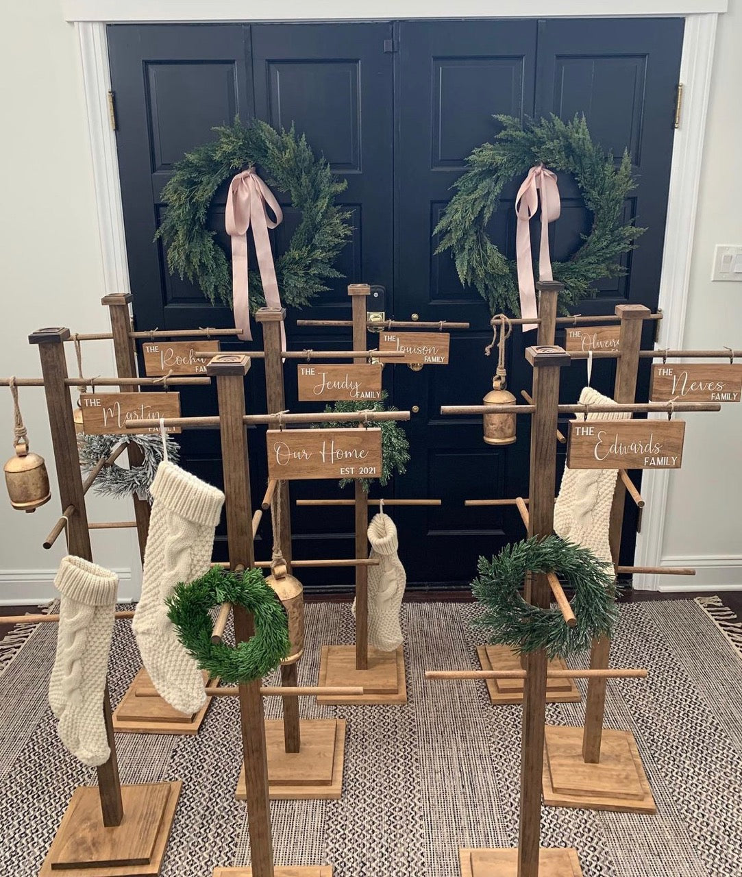 Don't have a mantel?? No problem... Display your Christmas stockings on this beautiful, personalized, stocking stand.