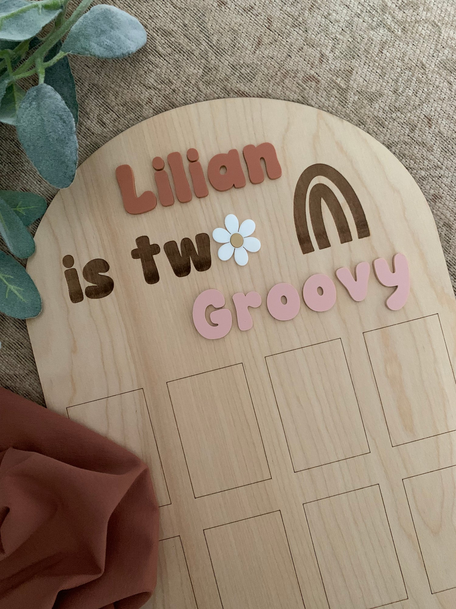 Having a two groovy party theme?! This photo board is the perfect addition to display your little ones photos. Each board measures 11x18.